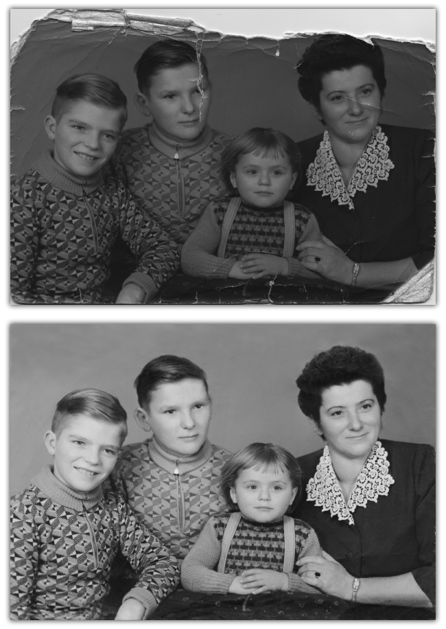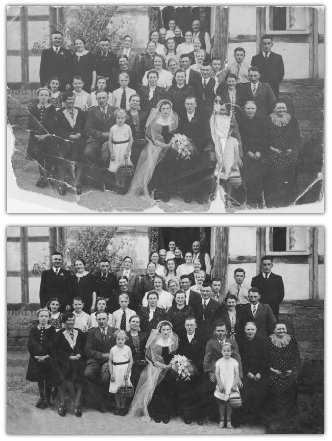 Außerdem rekonstruieren und reparieren wir auch fehlende Bildteile oder colorieren Ihre Bilder. Sie erhalten die fertig bearbeiteten Dateien auch digital. So können Sie jederzeit nachbestellen und preiswert weitere Bilder machen lassen.